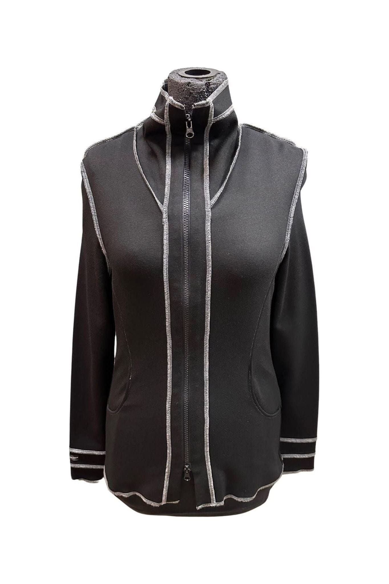 Monro peysa með útsaumum og tvöföldum rennilás